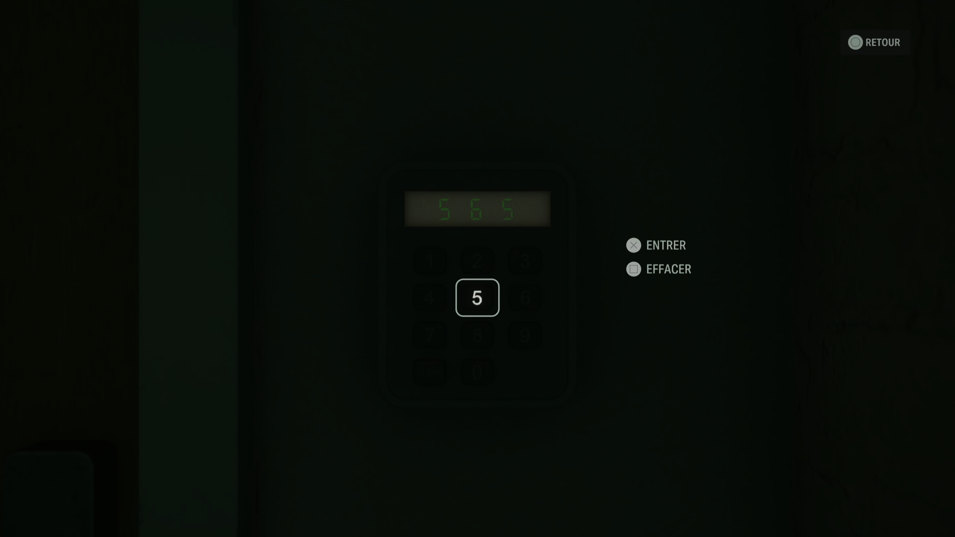 première partie et cette fois le néon affiche 3 chiffres de manière séquentielle, à savoir 5 – 6 – 5. Il vous faut donc rentrer ce code pour ouvrir la porte et continuer
