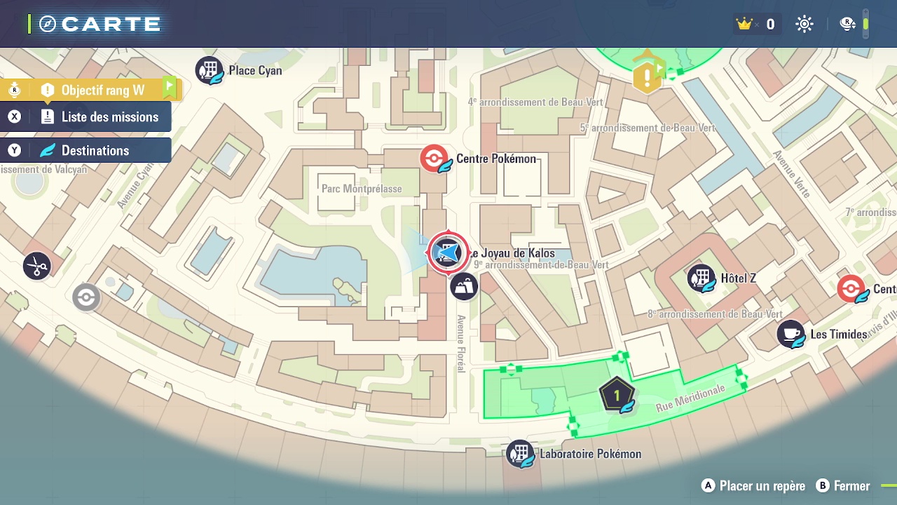 Au Joyau de Kalos, la Pierre Nuit est mise en vente uniquement après avoir terminé la Mission 39 de l’histoire principale. Une fois débloquée, elle apparaît dans