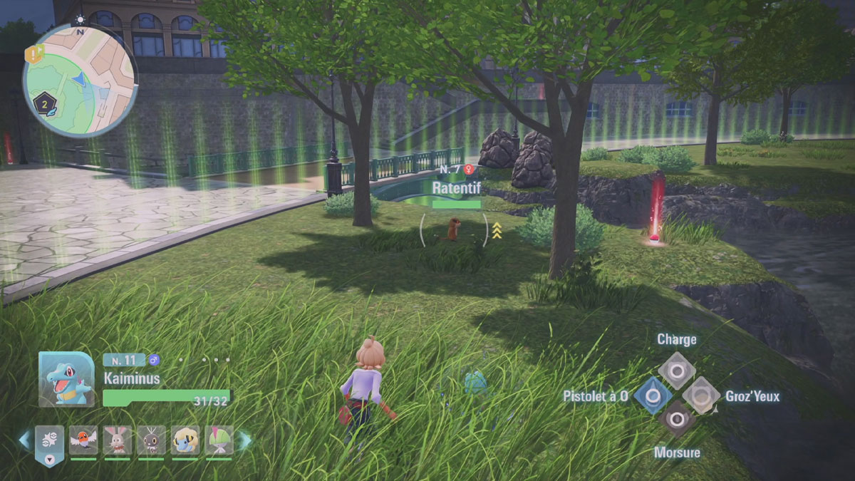 Pour le capturer facilement, cache-toi dans les herbes hautes (appuie sur le stick gauche pour t’accroupir) et lance ta Poké Ball pendant qu’il ne te regarde pas.