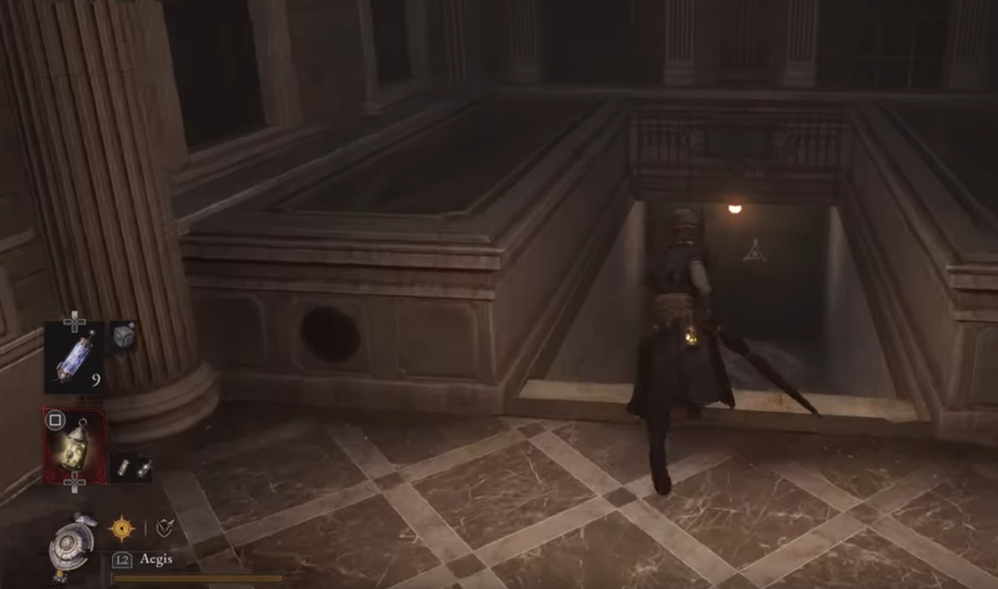 Pour la salle, allez au téléporteur du mur extérieur de l’Abbaye. Continuez sur le chemin via les échelles jusqu’à descendre au plus bas dans une cave pleine de piliers. Une fois que c’est fait,
