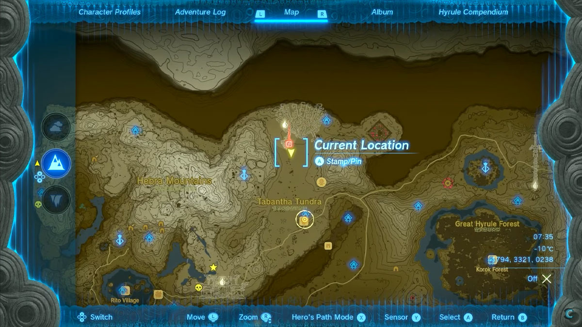 Penn vous guidera à travers différents relais d’Hyrule, chacun étant le théâtre d’une enquête à résoudre. Notre objectif principal se situe au Relais des Prairies Gelées, situé au sud-est de la