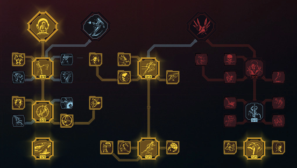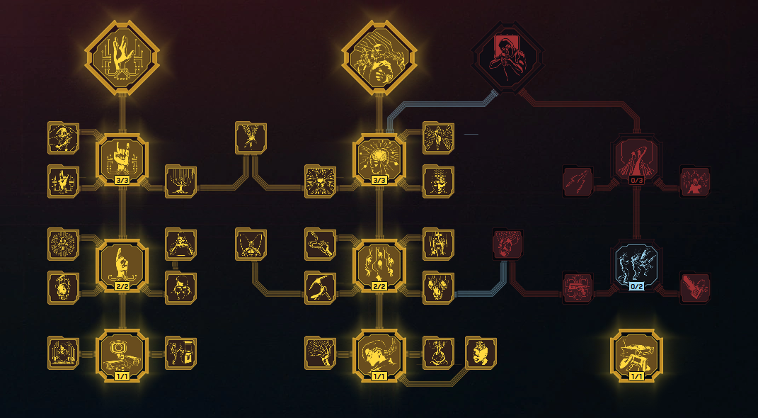 Le build Netrunner vous demande d’investir pas mal de points dans l’arbre Intelligence pour complétement jouer autour de votre capacité à contrôler la technologie des adversaires.