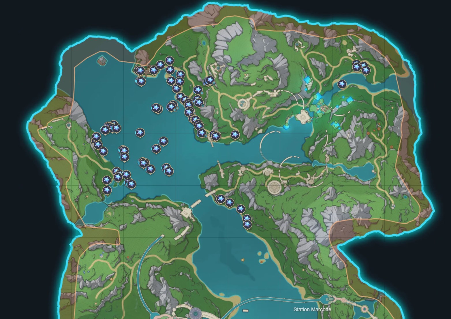 Emplacements où trouver des sombrétoiles dans Genshin Impact – source : HoYoLAB