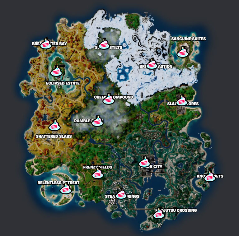 Pour vous aider à trouver les emplacements des gâteaux d’anniversaires, voici les emplacements des gâteaux dans Fortnite à l’occasion de la