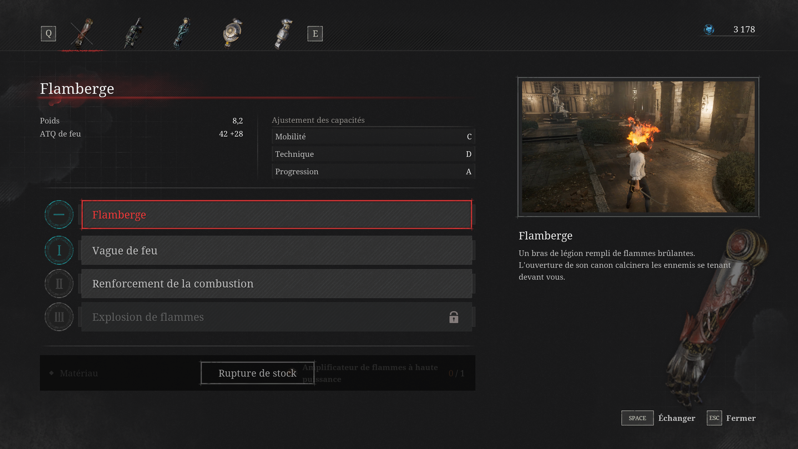 Flamberge est le premier bras que vous pourrez construire après avoir battu Fuoco, les flammes du roi. C’est le premier bras qui propose réellement une option de jeu avec