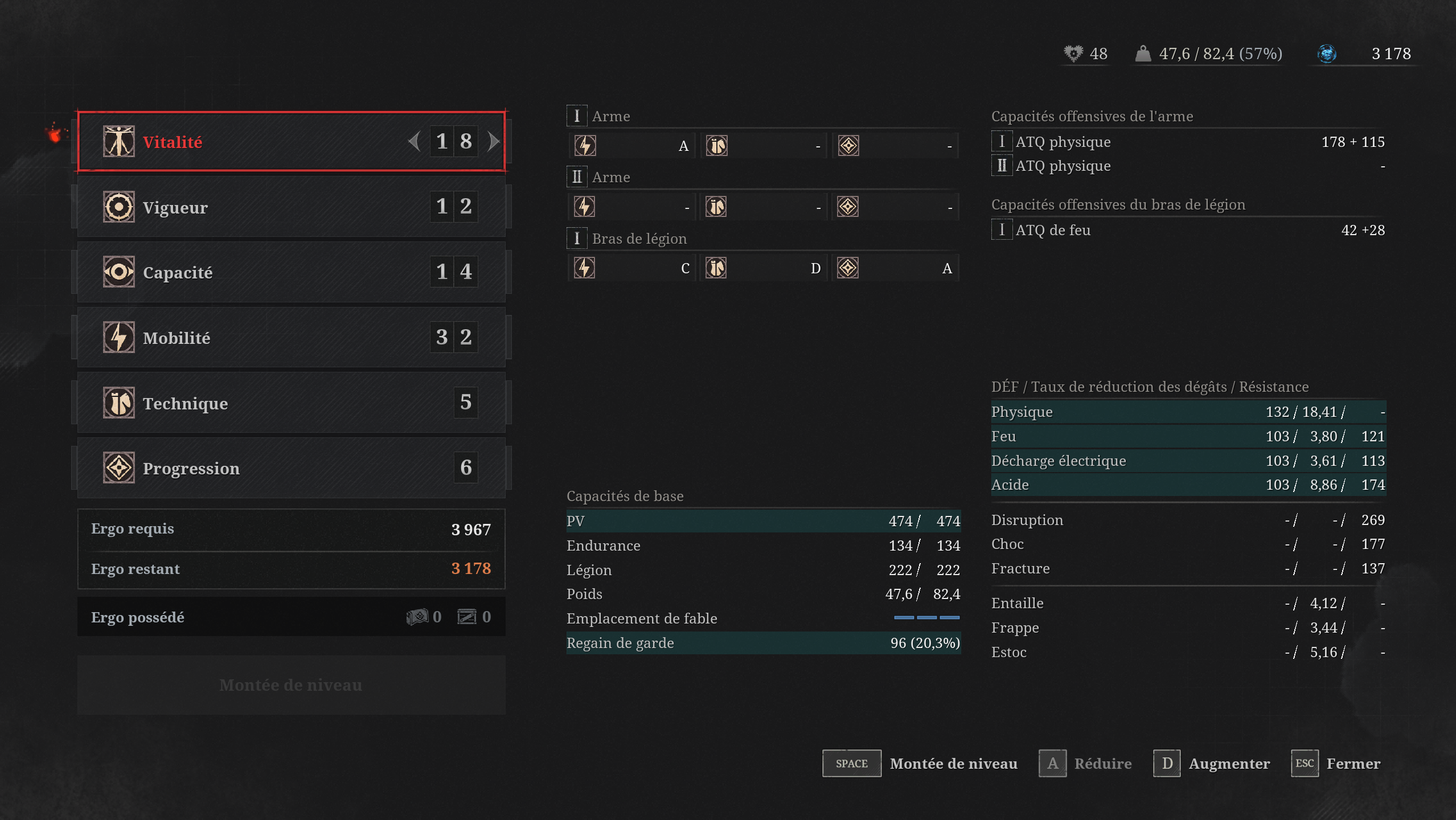 mais nous vous conseillons de faire un build mixte entre Progression et Technique ou Mobilité si vous voulez jouer autour de votre Bras légion et des sorts intégrés à l’intérieur.