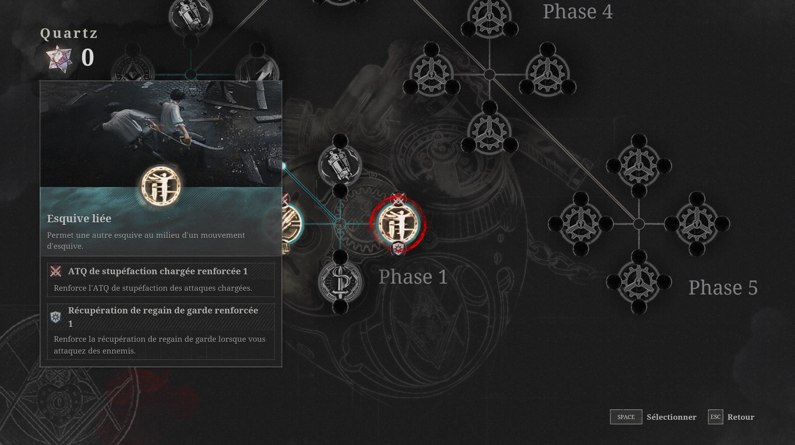 Quartz pour débloquer des niveaux dans le P-Organ et les choix vont être très importants. Nous vous conseillons fortement de prendre l’amélioration Esquive liée, qui