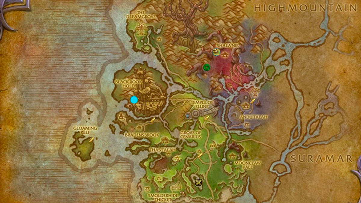 Le Bastion du Freux est un donjon situé à l’ouest de Val’sharah. Pour trouver l’entrée du donjon, prenez le portail situé à Valdrakken ou dans votre capital et dirigez-vous vers le point