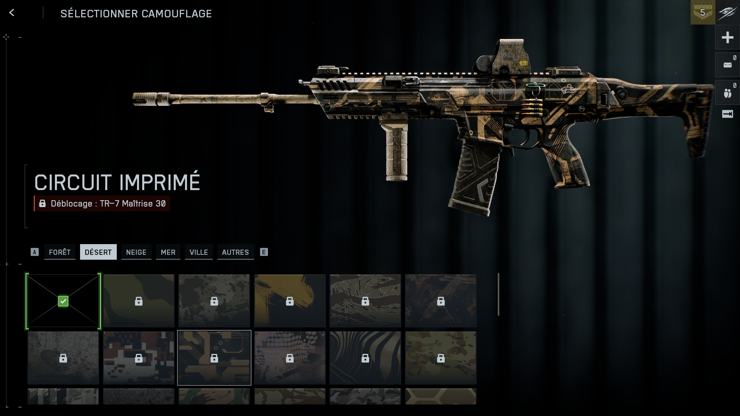- Circuit imprimé : Débloqué au niveau 30 de la TR-7