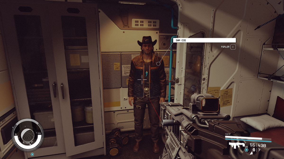 C’est très simple. Allez parler au compagnon que vous souhaitez équiper d’une tenue, d’une combinaison et d’une arme, et sélectionnez l’option de dialogue : Échangeons de l’équipement. Ensuite