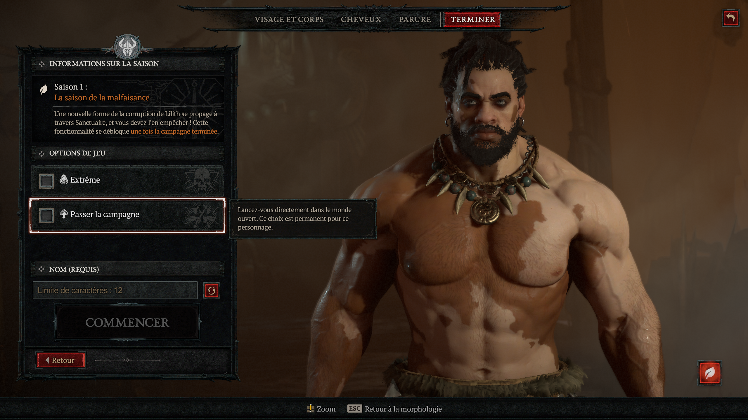 personnage et vous allez avoir la possibilité de Passer la campagne dans les options de jeu