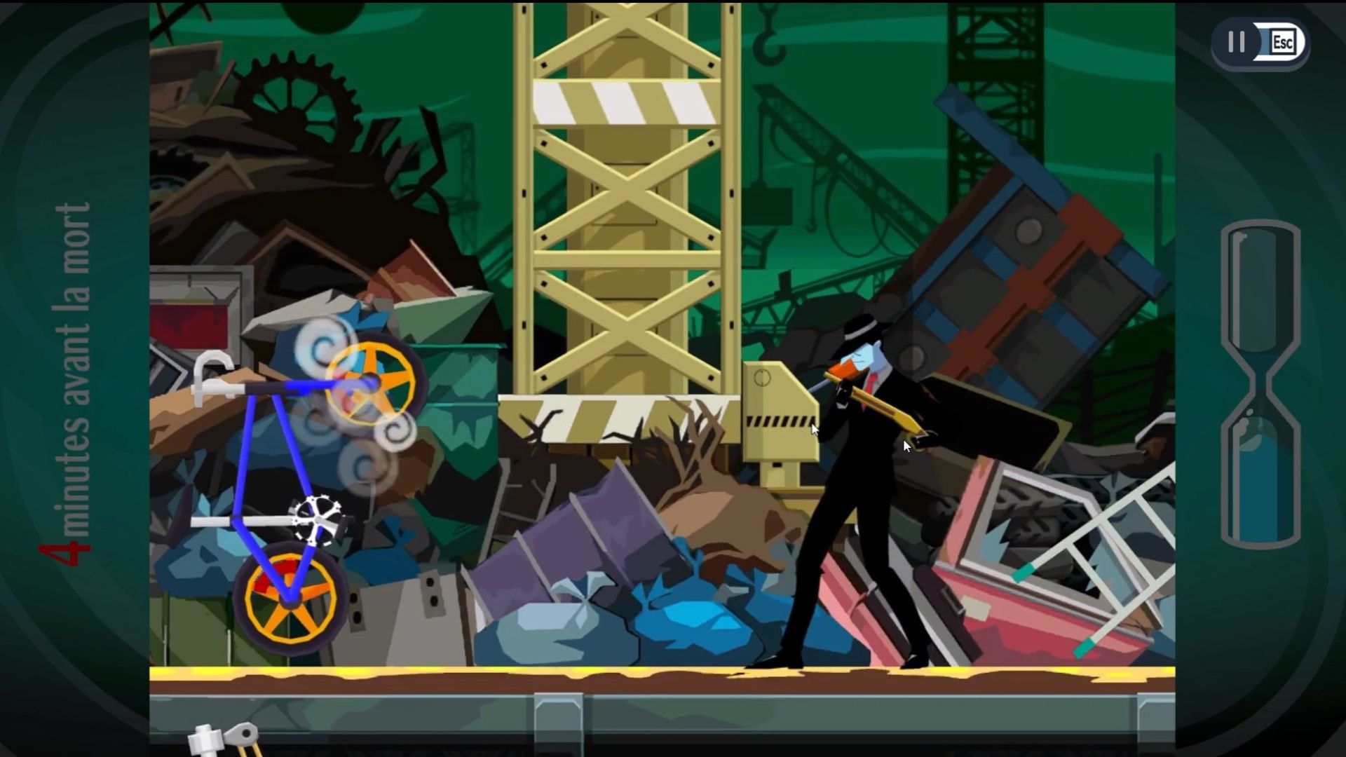 Prenez ensuite le contrôle du vélo et faites sonner les tympans du tueur, malheureusement, ça ne suffira pas, le distraire n’est pas assez.