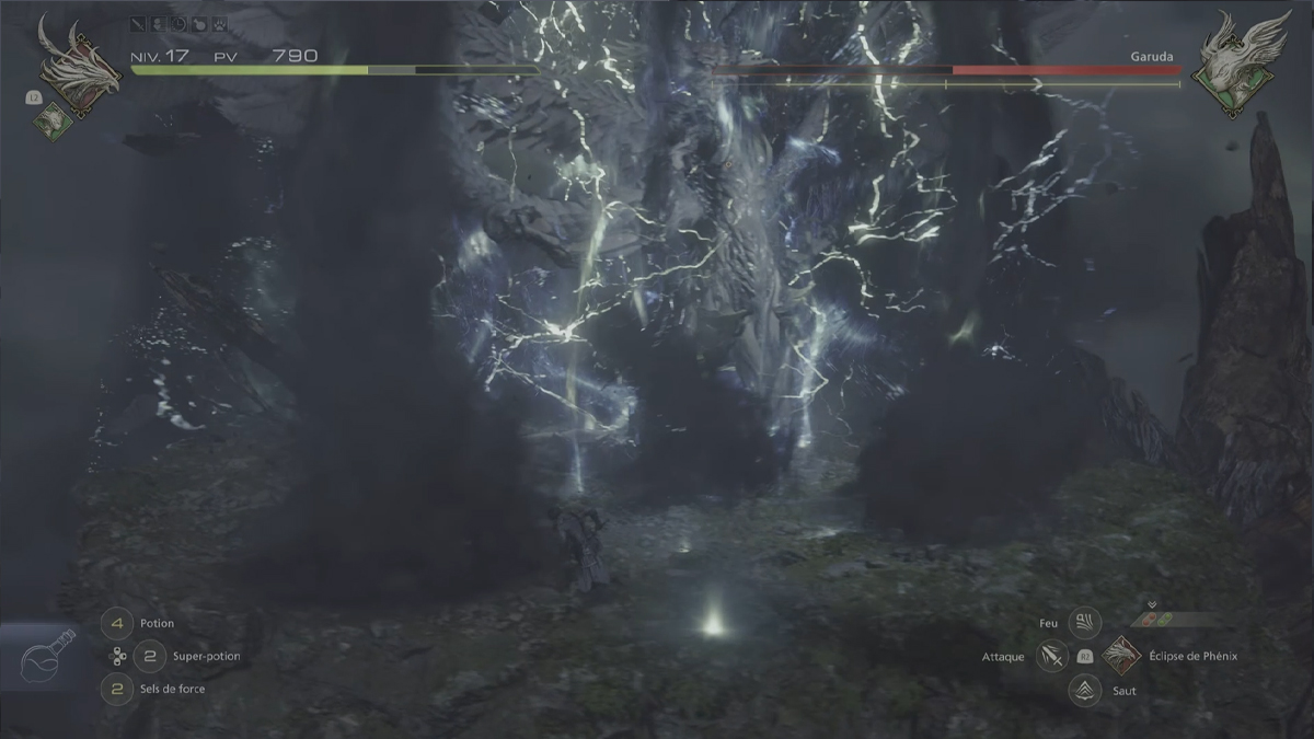 Pour vous attaquer, elle va charger dans votre direction, à vous d’esquiver au bon moment. Vous pouvez voir venir Garuda puisqu’elle prépare sa charge.