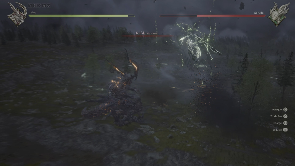 À un certain moment du combat, vous perdez le contrôle d’Ifrit, et le combat se termine par une cinématique interactive. Vous pouvez retrouver l’intégralité du combat dans la vidéo suivante