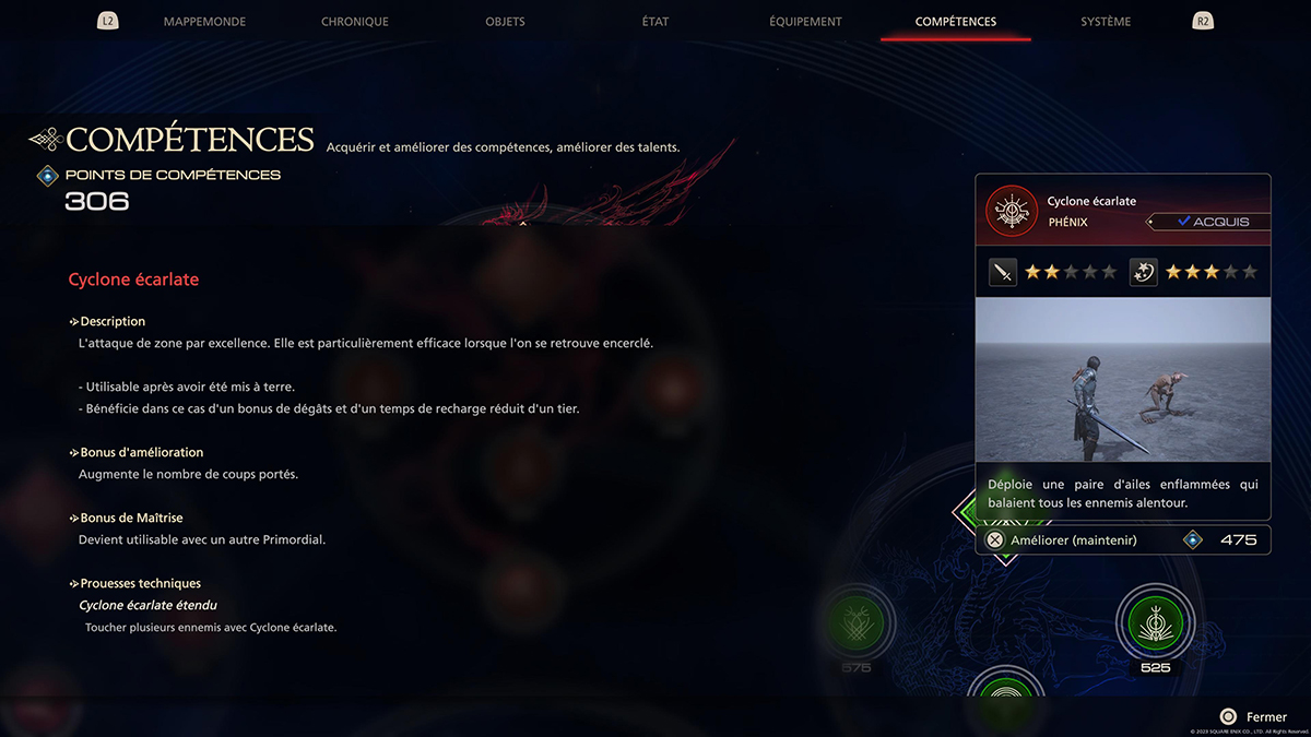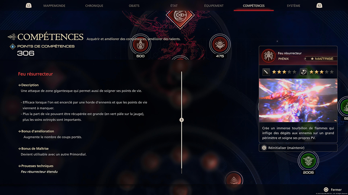 ses compétences peuvent être renforcées davantage en débloquant et en maîtrisant de nouvelles compétences de primordiales. C’est notamment le cas avec les compétences de Phénix.