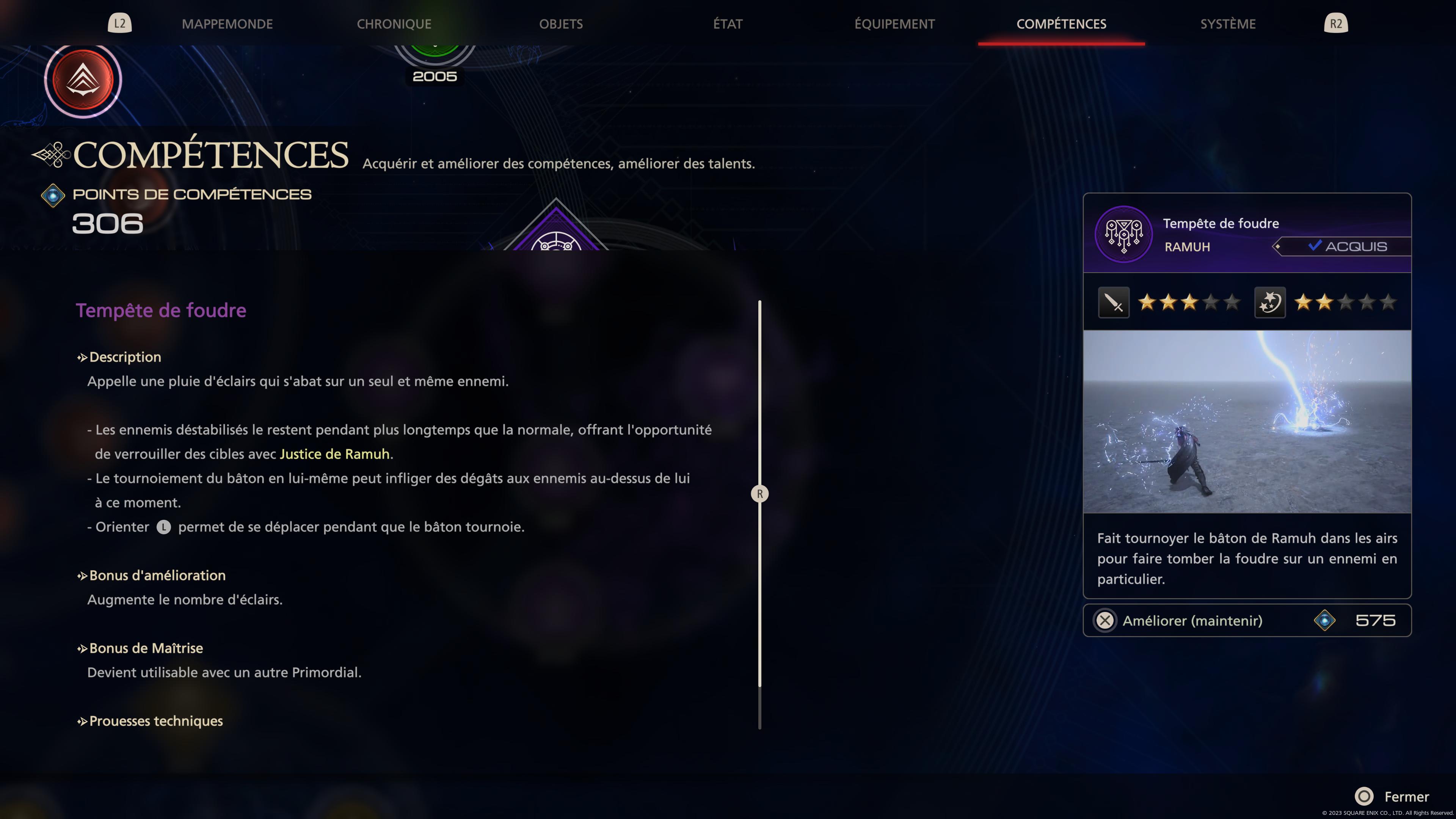 Chaque Primordial vous permet d’utiliser certaines de leur capacité bien spécifique à leur classe et élément qu’ils contrôlent. Comme il maîtrise les éclairs, Ramuh utilise des sorts de foudres