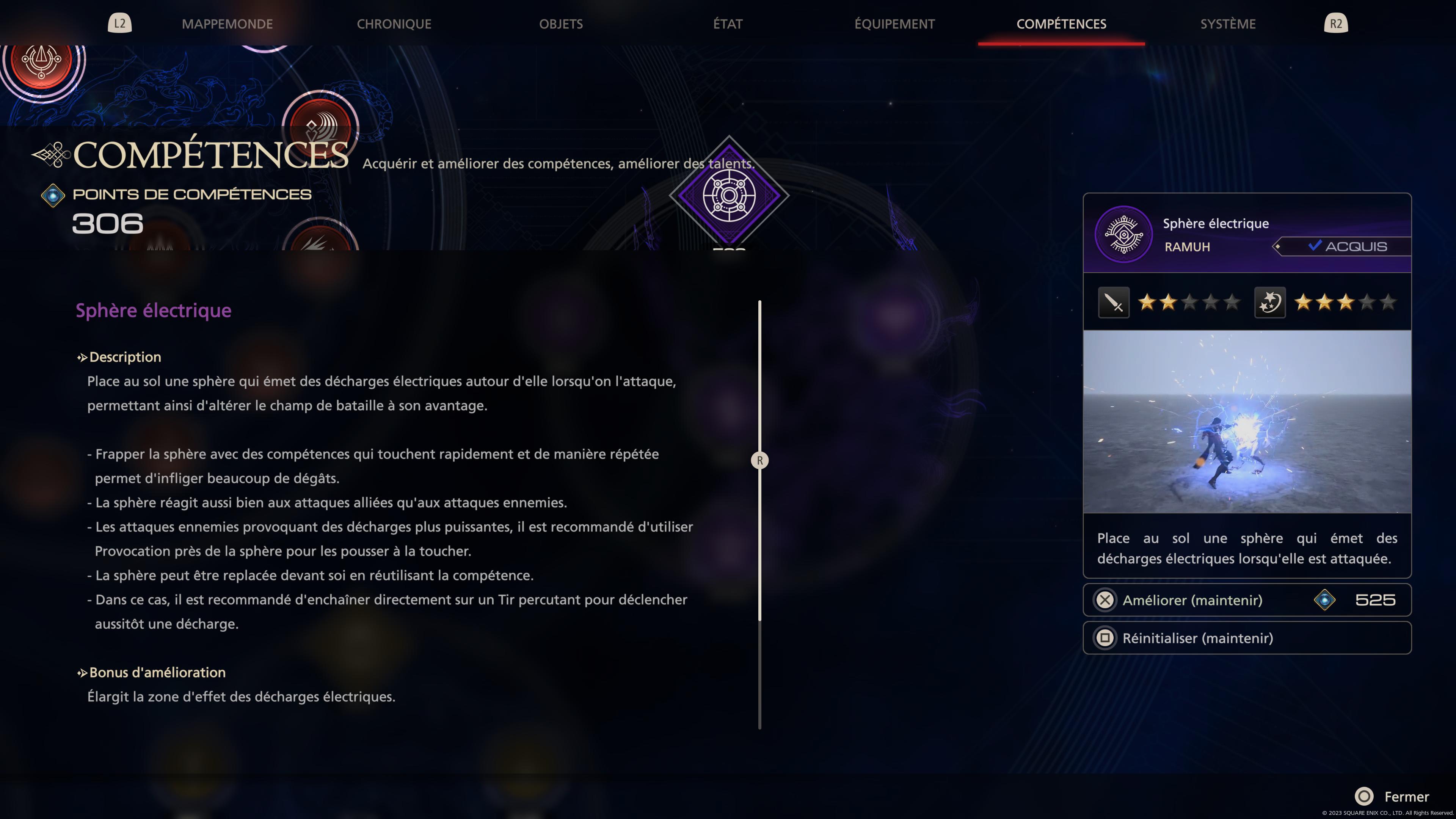 Sphère électrique : Pose des sphères au sol qui électrifient autour d’elles, permettant de dominer le champ de bataille.