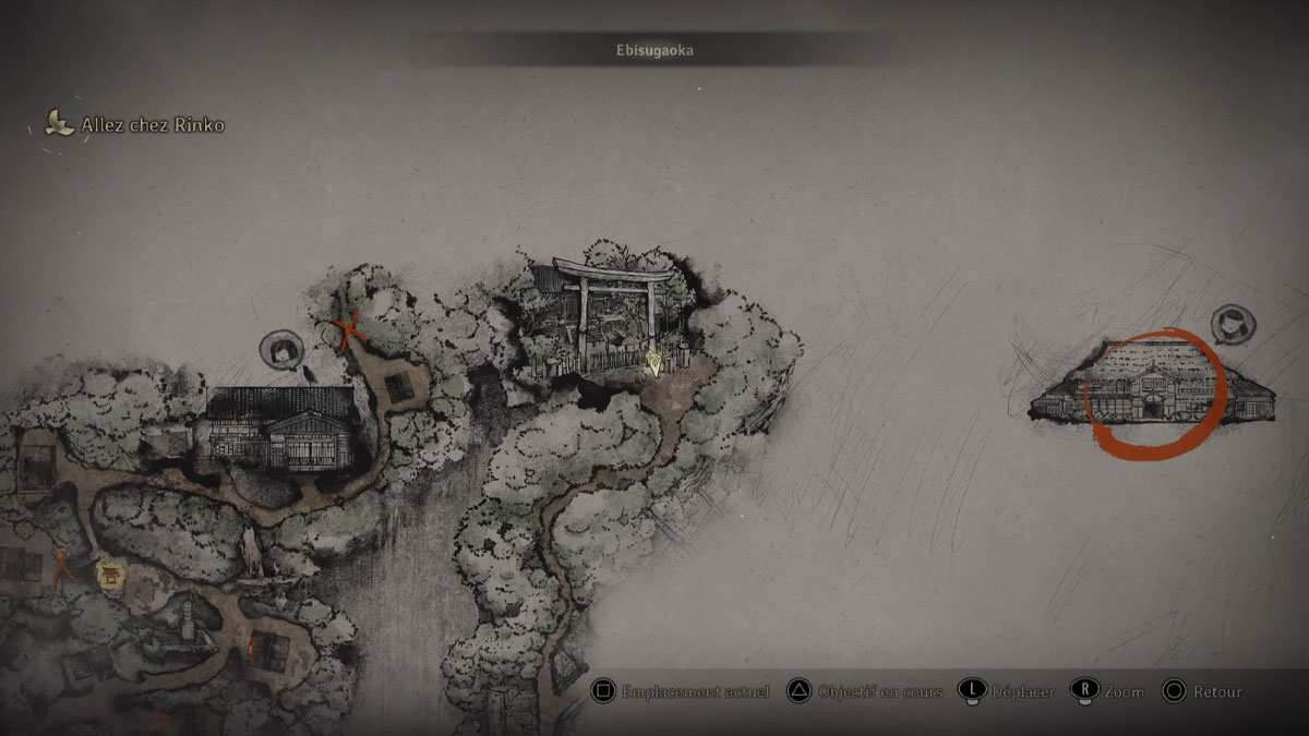 - Au lieu de partir directement à droite vers les champs, montez vers le nord pour atteindre le sanctuaire Sennensugi.