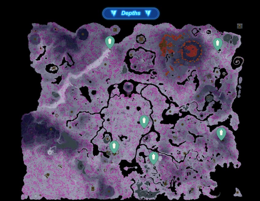 L’emplacement des statues de Génie dans les Profondeurs – source : Map Genie.io