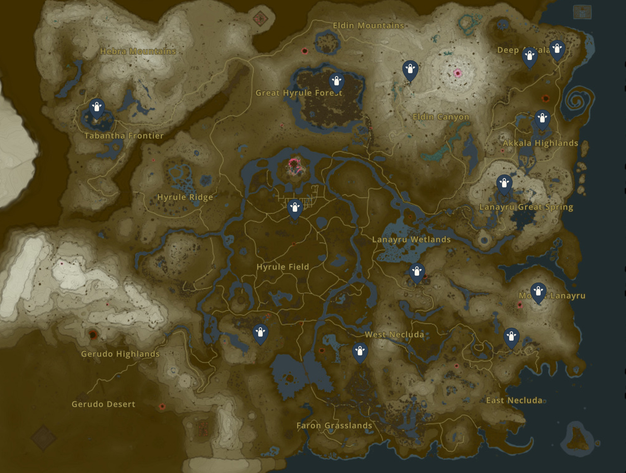 l’emplacement des statues de déesse dans TotK pour que vous puissiez échanger vos lueurs bienfaisantes.
