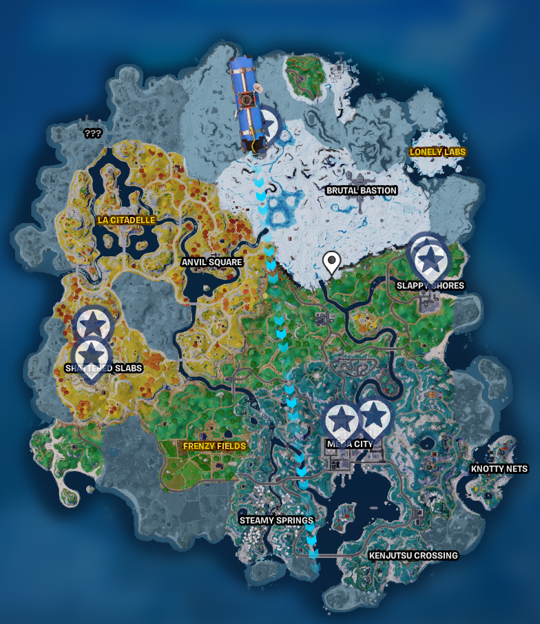 Pour commencer, lancez une partie et ouvrez votre carte. Les emplacements des posters sont répartis sur toute l’île, mais nous vous recommandons de vous concentrer sur les lieux-dits tels que Mega