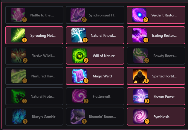 Côté build, certains talents se démarquent. Verdant Restoration augmente les chances de critique de