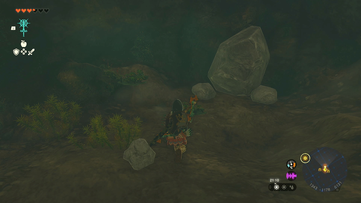 Pour trouver cette grotte, descendez légèrement la colline à l’arrière de la tour. Préparez-vous à un parcours sinueux rempli de cailloux à casser. Naviguez à travers cette grotte