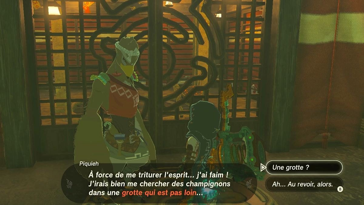 Commencez par rencontrer Piquieh, un Piaf stationné devant la tour. Il vous confiera son incompréhension face à la porte de la tour qui refuse de s’ouvrir et mentionnera une grotte