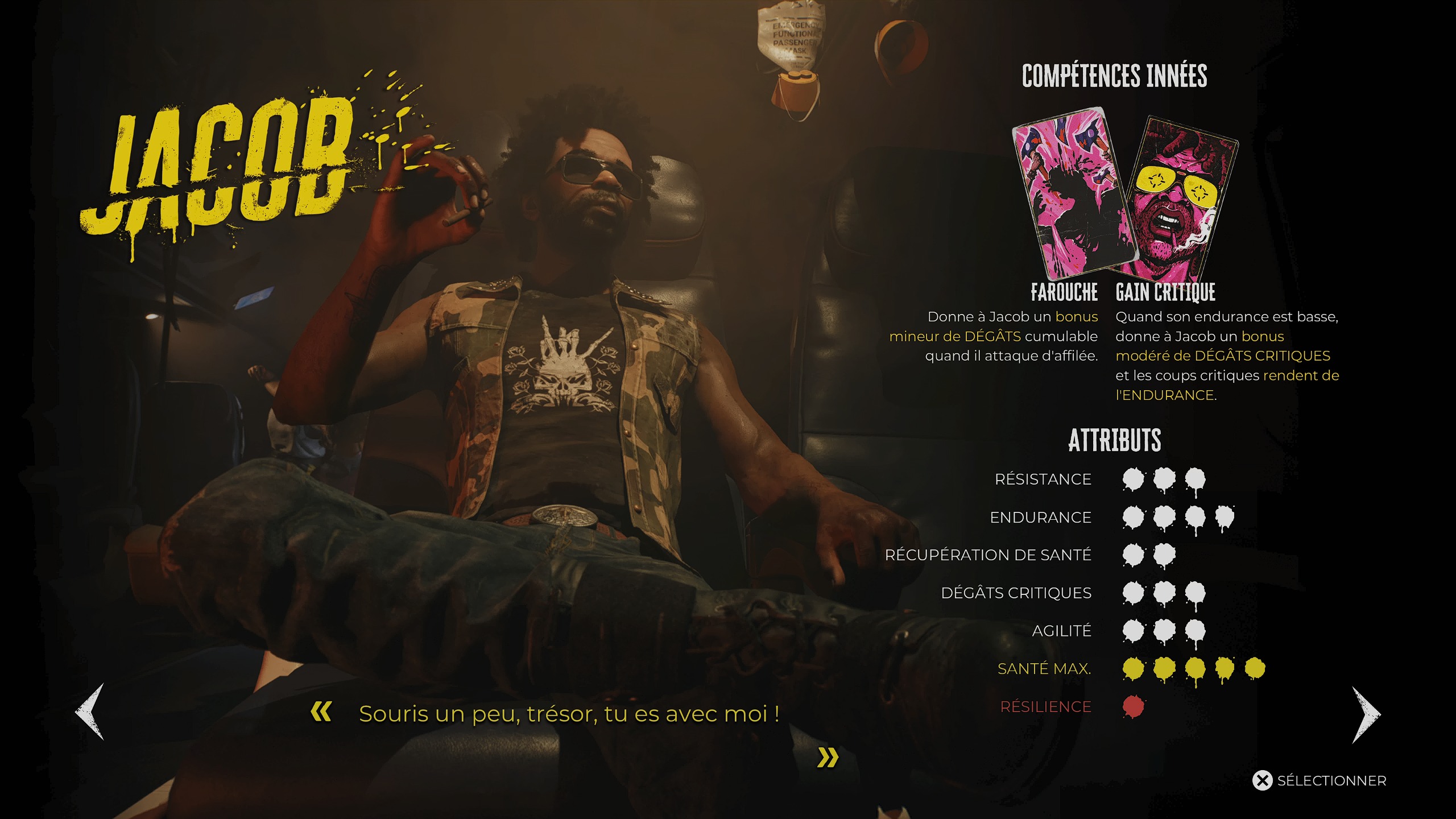Jacob est le personnage le plus polyvalent du jeu, il est assez moyen en tout, mais n’excelle vraiment en rien. Il dispose cependant de deux cartes bien utiles si