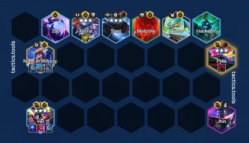 Si vous avez beaucoup d’items de puissance, une bonne sortie mascotte ou bien une Hero Augment qui booste Vex, cette composition peut s’avérer extrêmement puissante.
