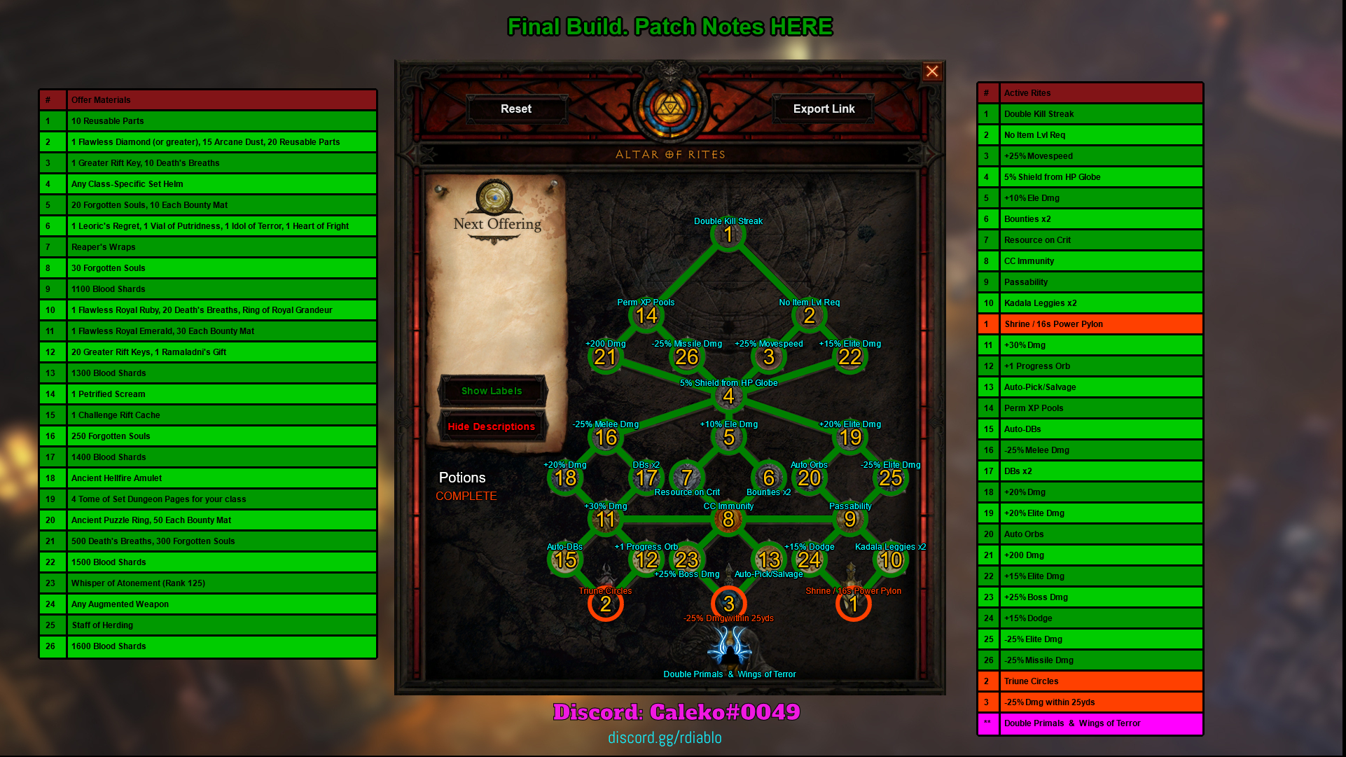 déjà de prévoir vos étapes de leveling de votre autel des rites. Vous pouvez même faire votre propre build !