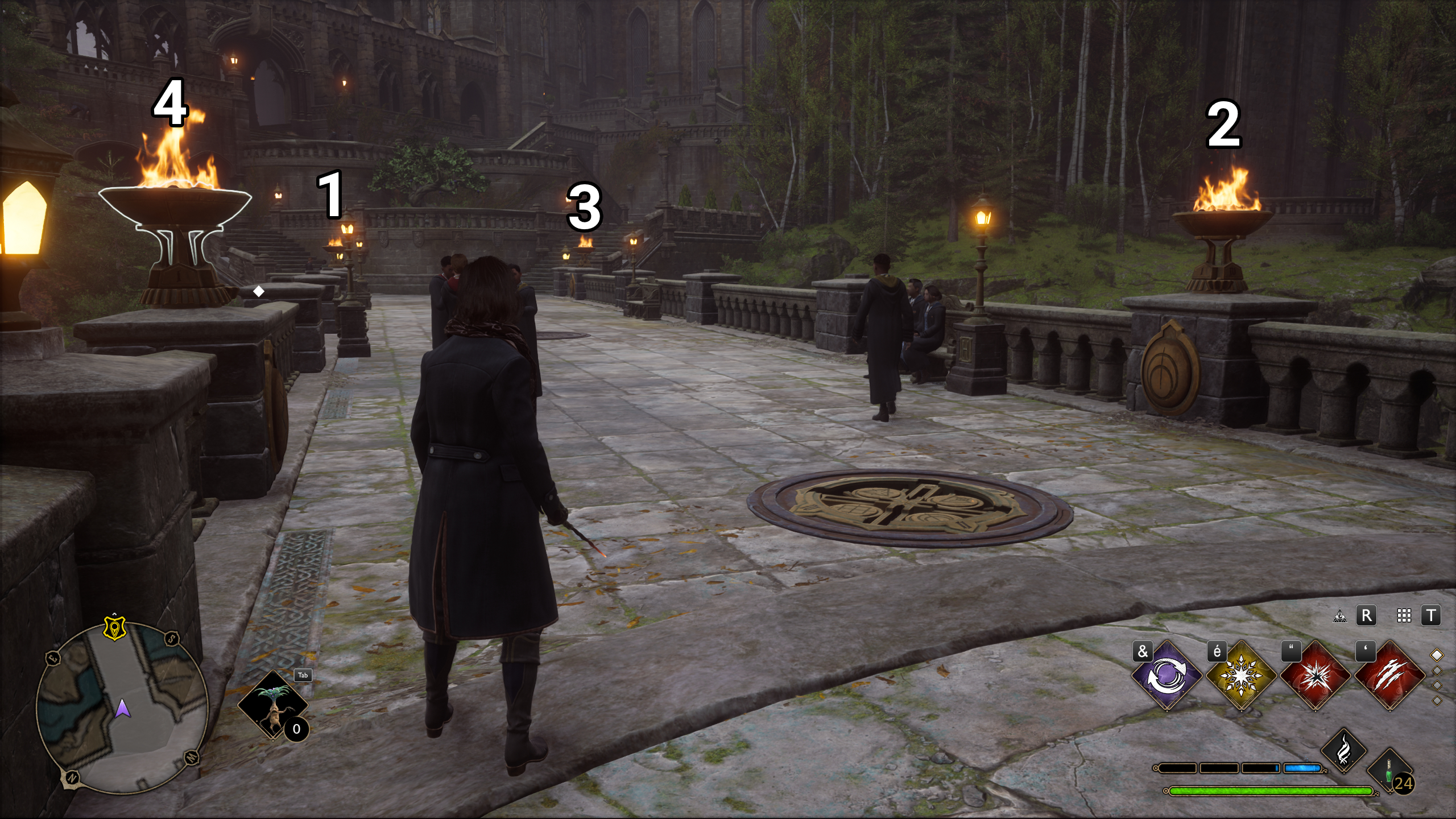 Pour commencer, dirigez-vous vers le relai de poudre de cheminette de la cour du Viaduc, se trouvant dans l’aile de la grande salle.