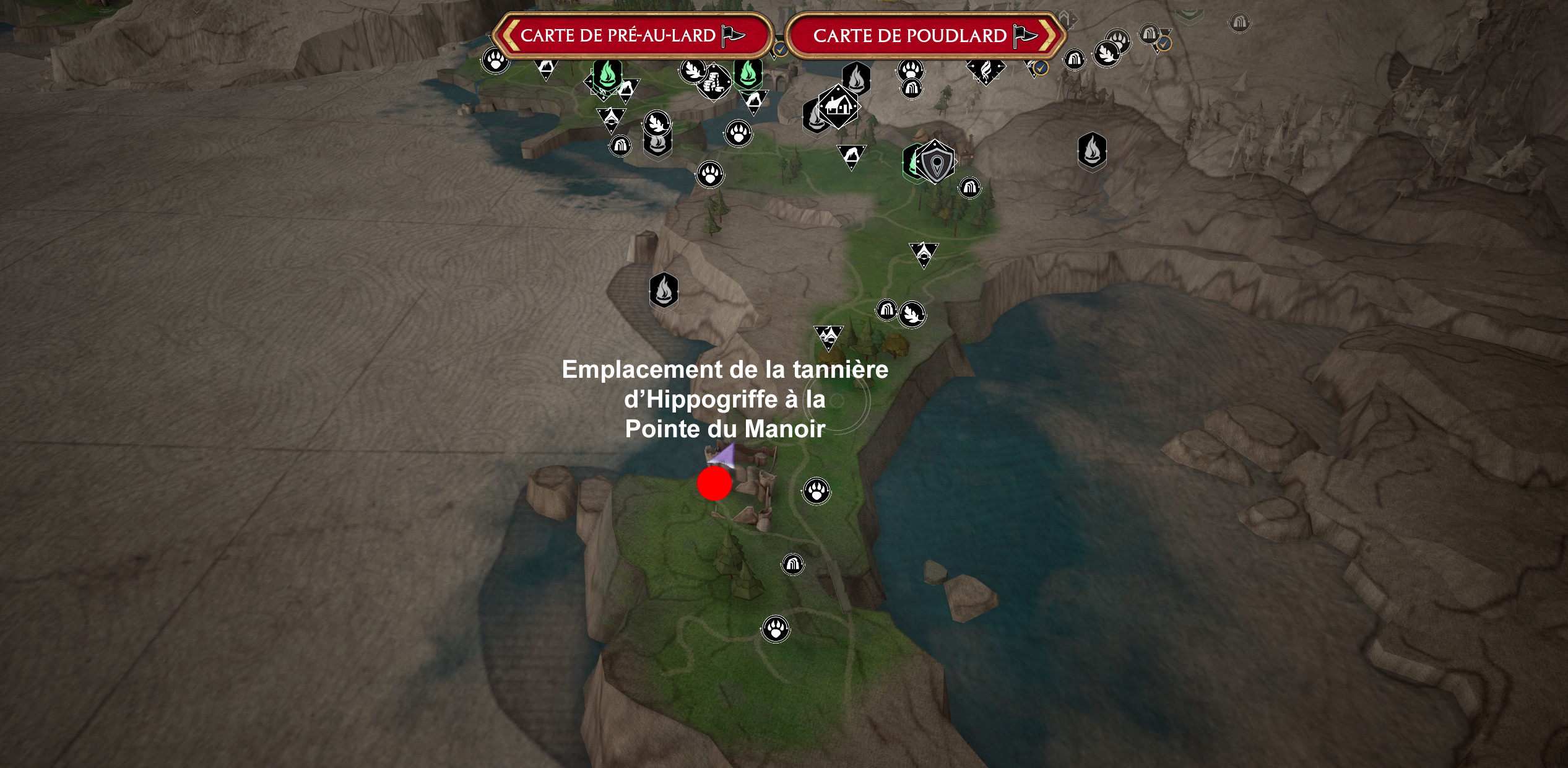vous donne l’emplacement des tanières de l’Hippogriffe.