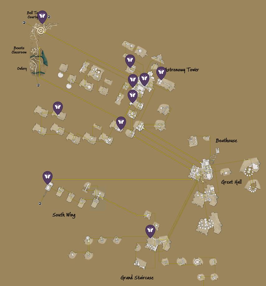 Emplacements des Miroirs aux Papillons dans Hogwarts Legacy
