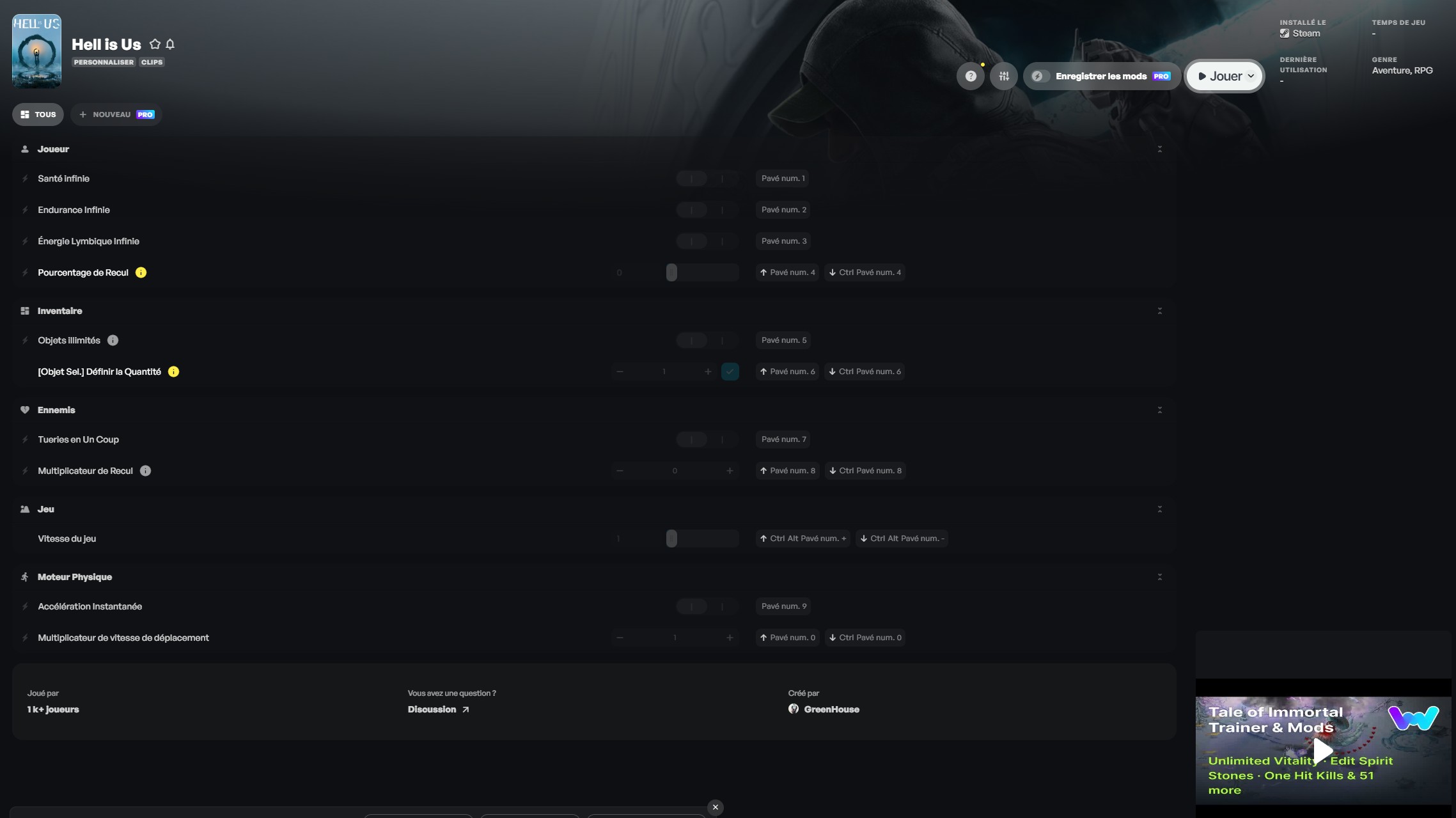 Si vous voulez utiliser un trainer, nous vous conseillons d’installer le programme WeMod qui est très facile à utiliser puisque les modes de triche peuvent être activés avec juste quelques