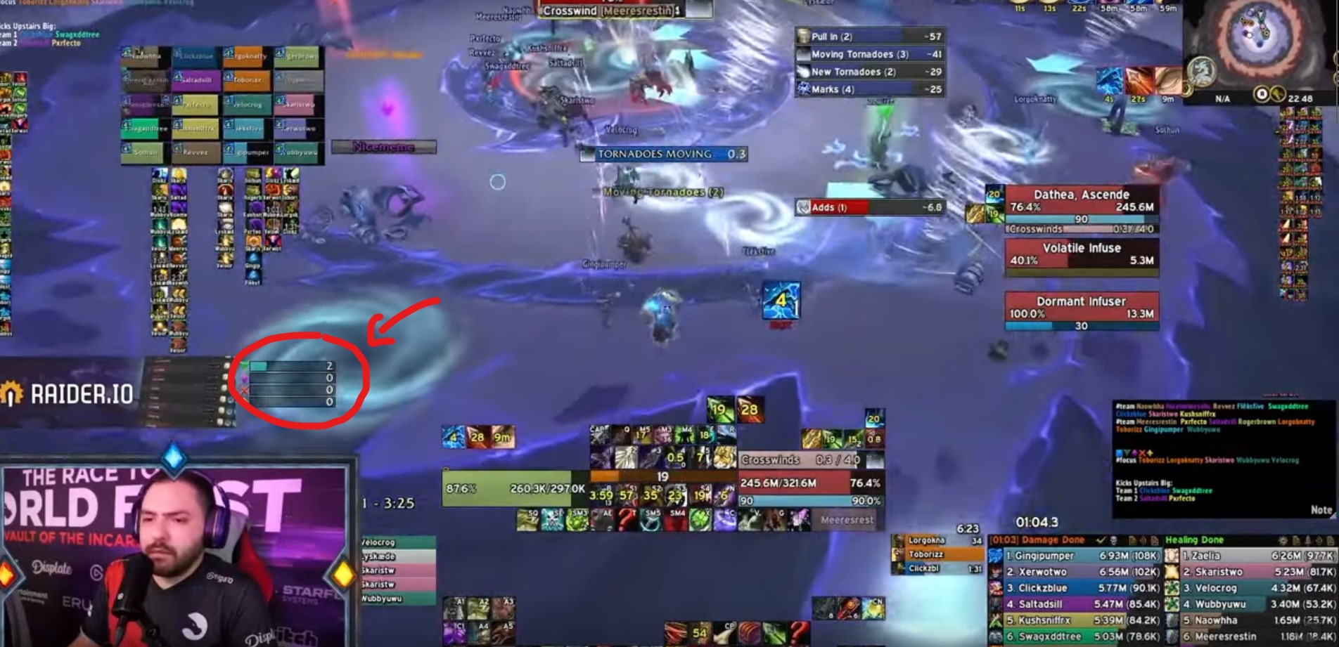 sur l’Imprégnateur à 60% d’énergie – 2 par 2, bien sûr – et l’invoque. Le tank qui n’est pas sur le boss récupère l’Imprégnateur et l’amène au corps à corps pour cleave dessus. - Premier Cyclone (environ 35 secondes) : Utilisez un sort de mouvement type Rugissement du Druide, un CD heal majeur, un CD Raid et même un CD Heal mineur si vous sentez le