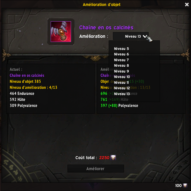 vous permettra d’améliorer vos équipements obtenus en Joueur contre Joueur ou en donjons mythiques+