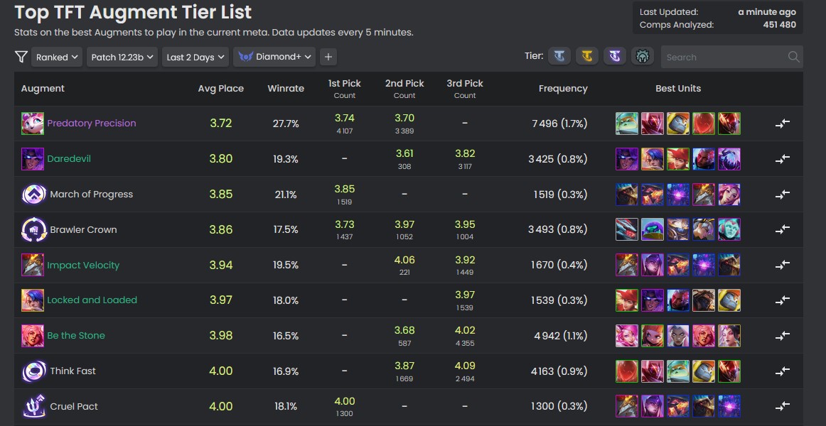 items et augments. Vous pouvez visiter le site dès que vous hésitez pour un augment par exemple, en comparant les taux de victoire et de top 4.