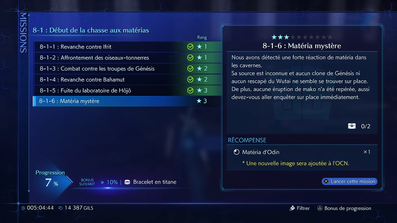 Une fois la quête principale à Midgar terminée, vous devez alors compléter une mission secondaire pour récupérer la Matéria de Odin.