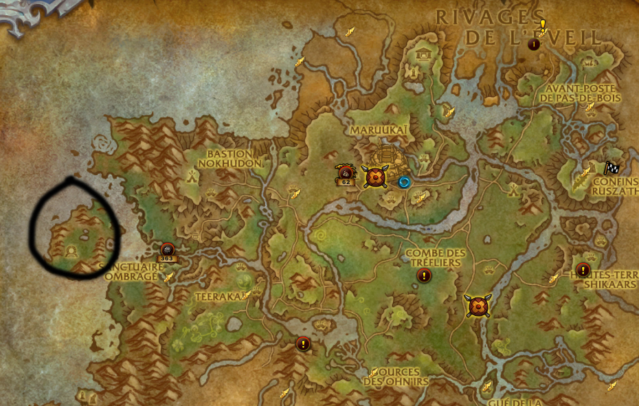 Jardin d’émeraude à l’ouest des Plaines d’Ohn’ahra indiqué sur la carte ci-dessous :