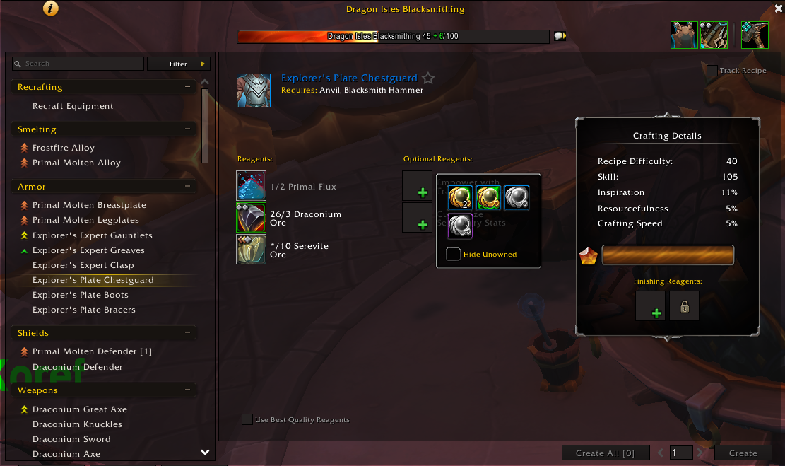 - Et enfin le rang 4, qui permet d’améliorer des objets de niveau 316 ou plus jusqu’au niveau 382.