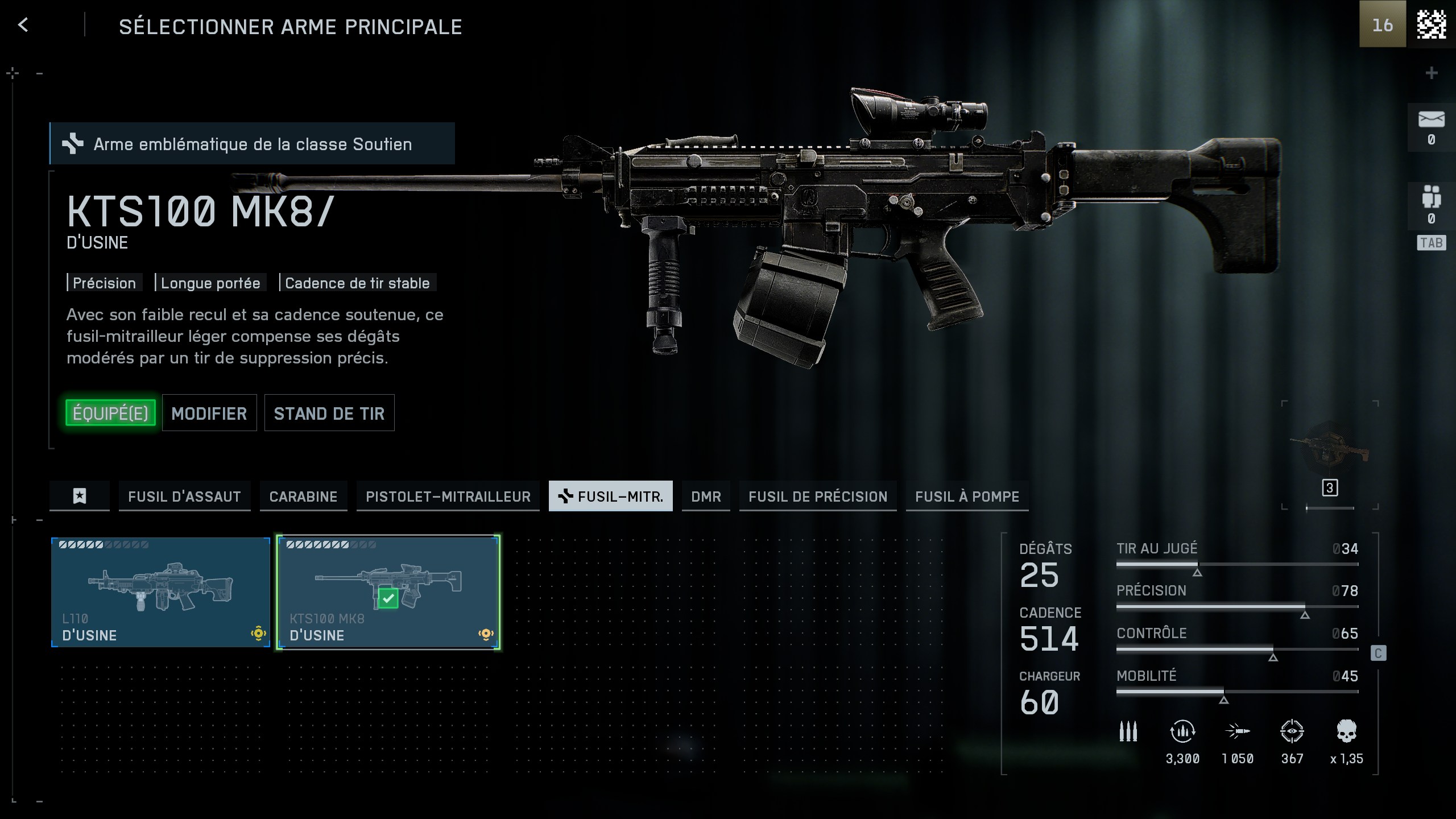Au niveau des équipements, cela dépend grandement de la classe avec laquelle vous jouez la KTS100 MK8. Dans notre cas, nous la jouons sur le