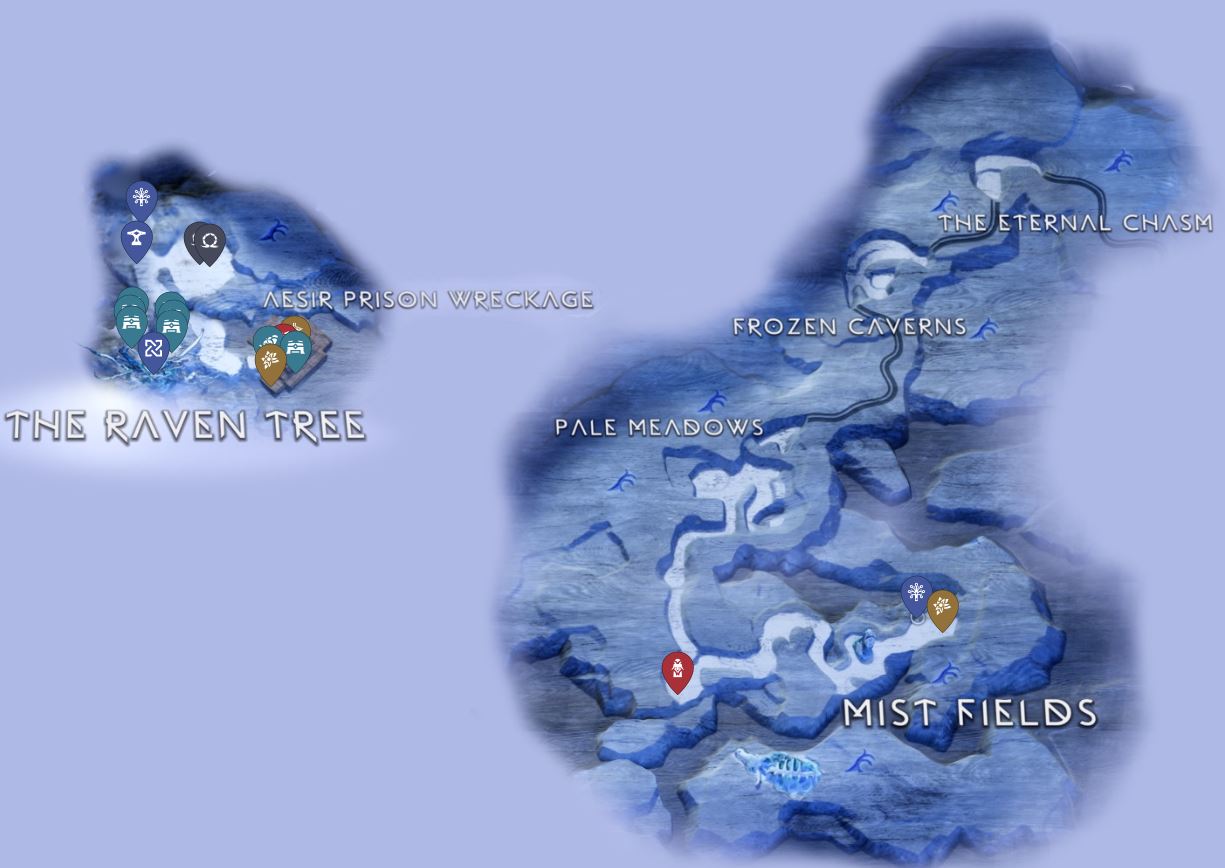 Emplacements des collectibles dans le Niflheim (crédits : SNIR)