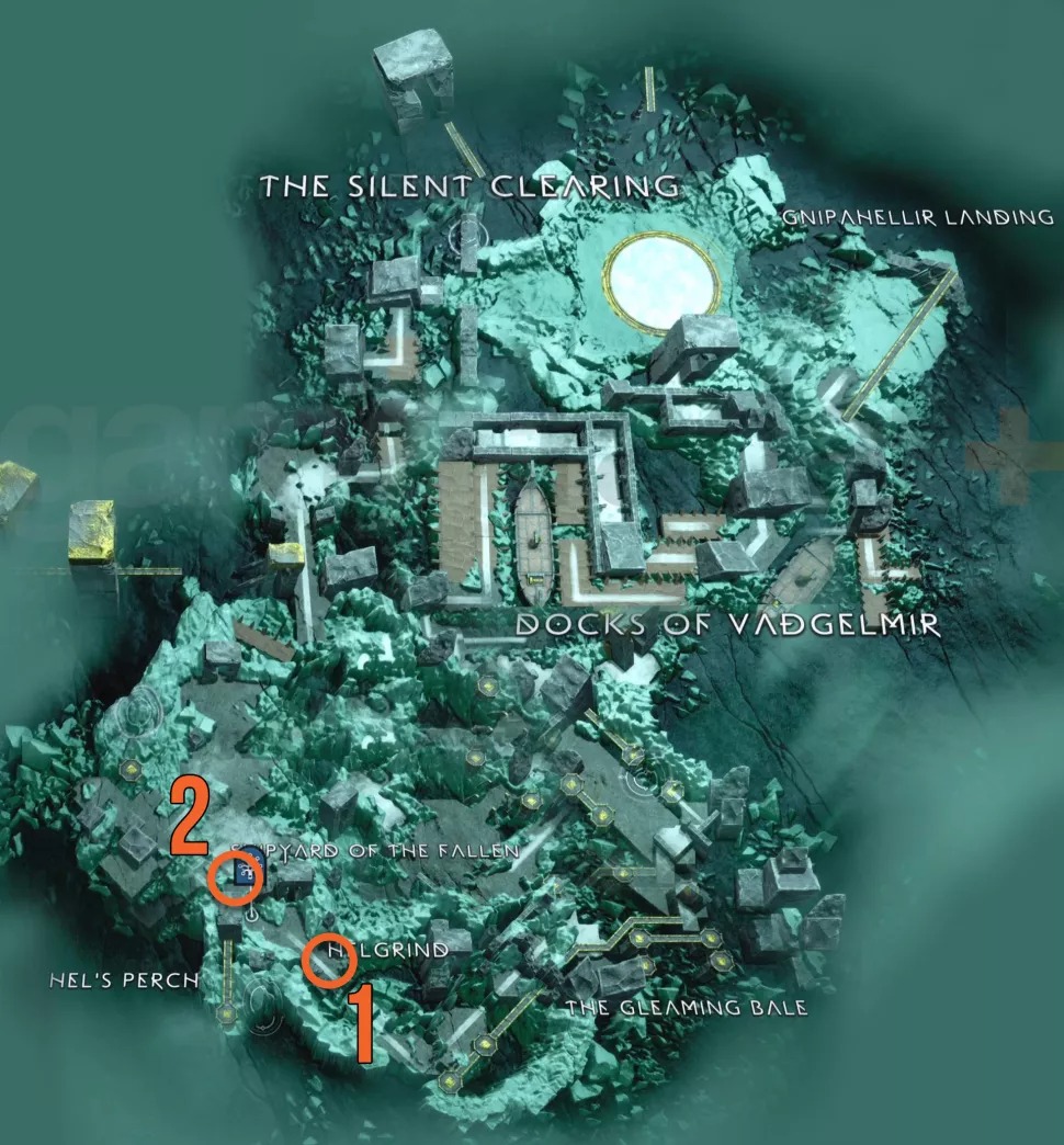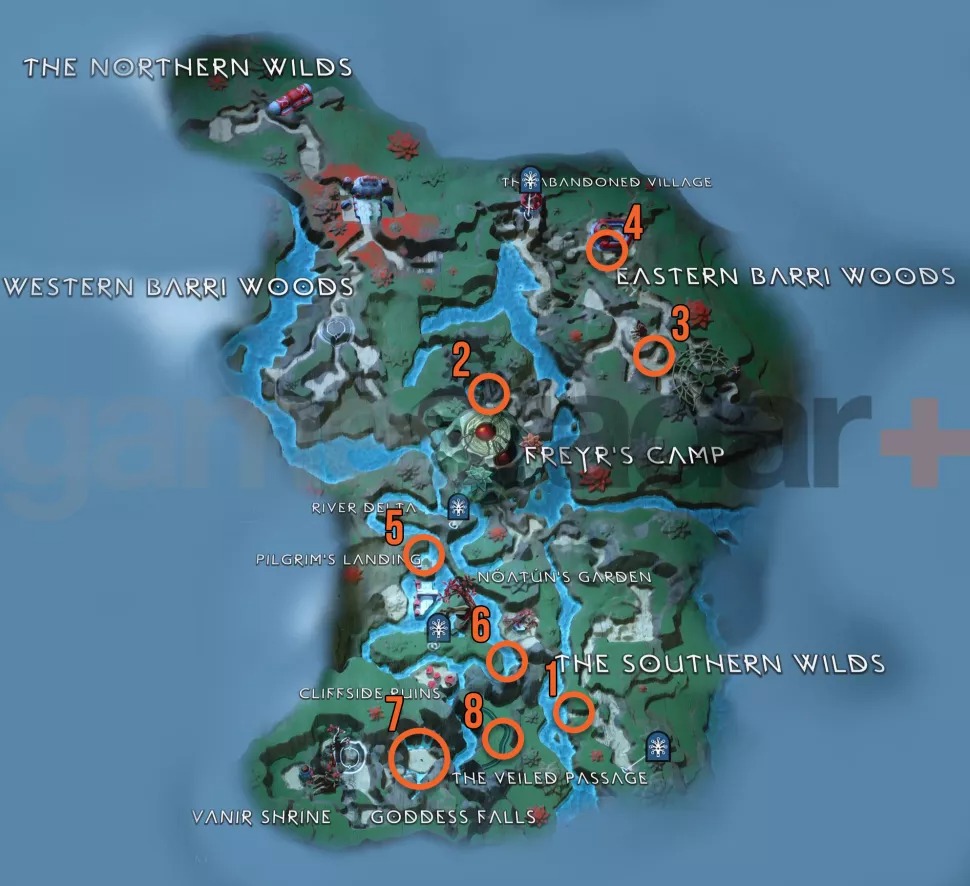 Emplacements des corbeaux donnant les yeux d’Odin dans God of War Ragnarok (crédits : GamesRadar)