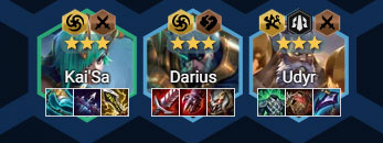 Prenez également les Kai’sa et les Udyr que vous pouvez avoir aussi à ce niveau. Kai’sai est un excellent second carry qu’il ne faut pas négliger pour faire