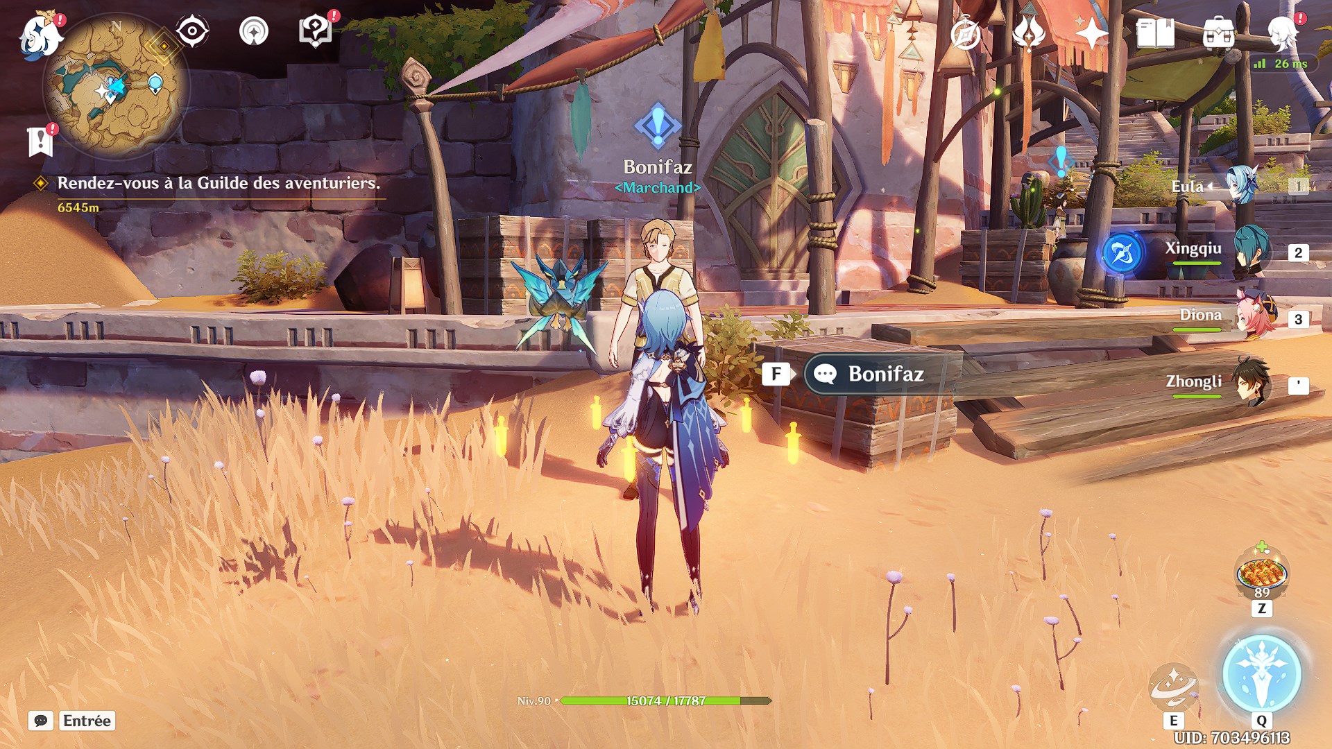 situé près de la Statue des Sept. Sur place, vous allez trouver un marchand venu de Mondstadt du nom de Bonifaz et pour obtenir la quête, il vous suffit de lui
