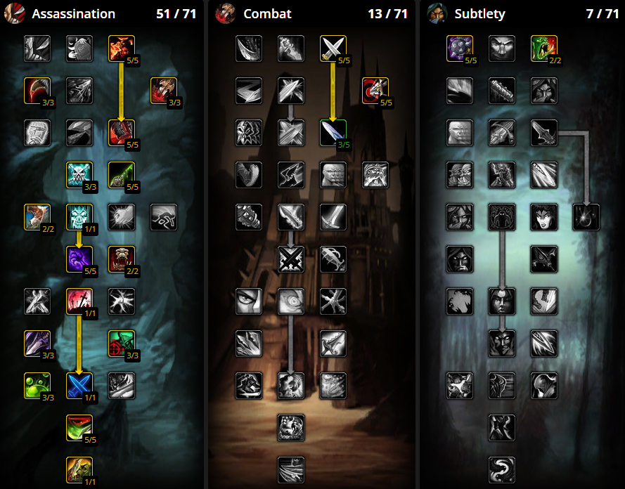 Retrouvez ci-dessous l’arbre de talents optimal du Voleur Assassinat sur World of Warcraft.
