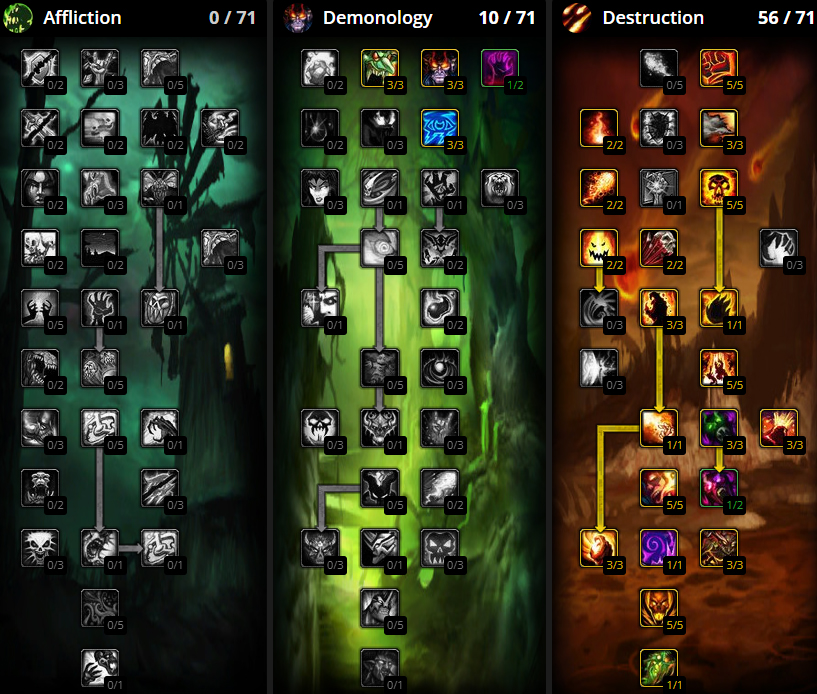 Retrouvez ci-dessous l’arbre de talents optimal du Démoniste Destruction sur World of Warcraft.