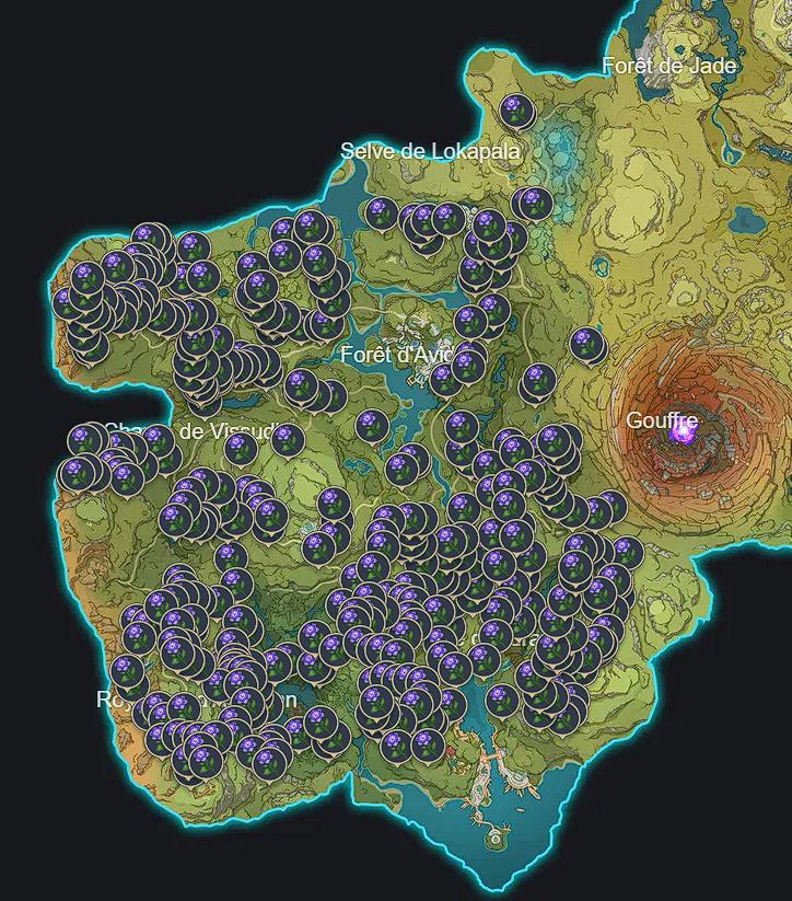 Sumeru. Ils sont trouvables un peu partout dans la région. Pour en trouver plus facilement, vous pouvez consulter l’image ci-dessous issue de la carte interactive de