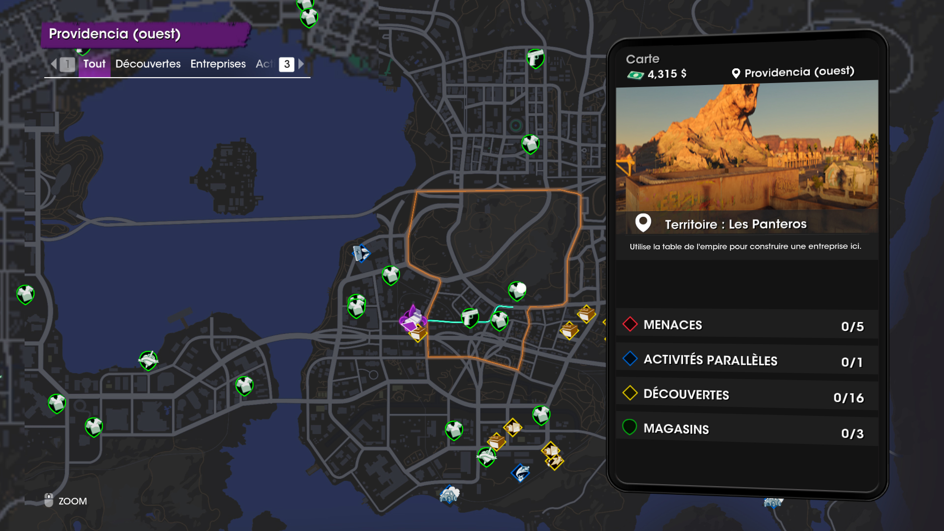 Cartes et activités – Source : Saints Row (en jeu)